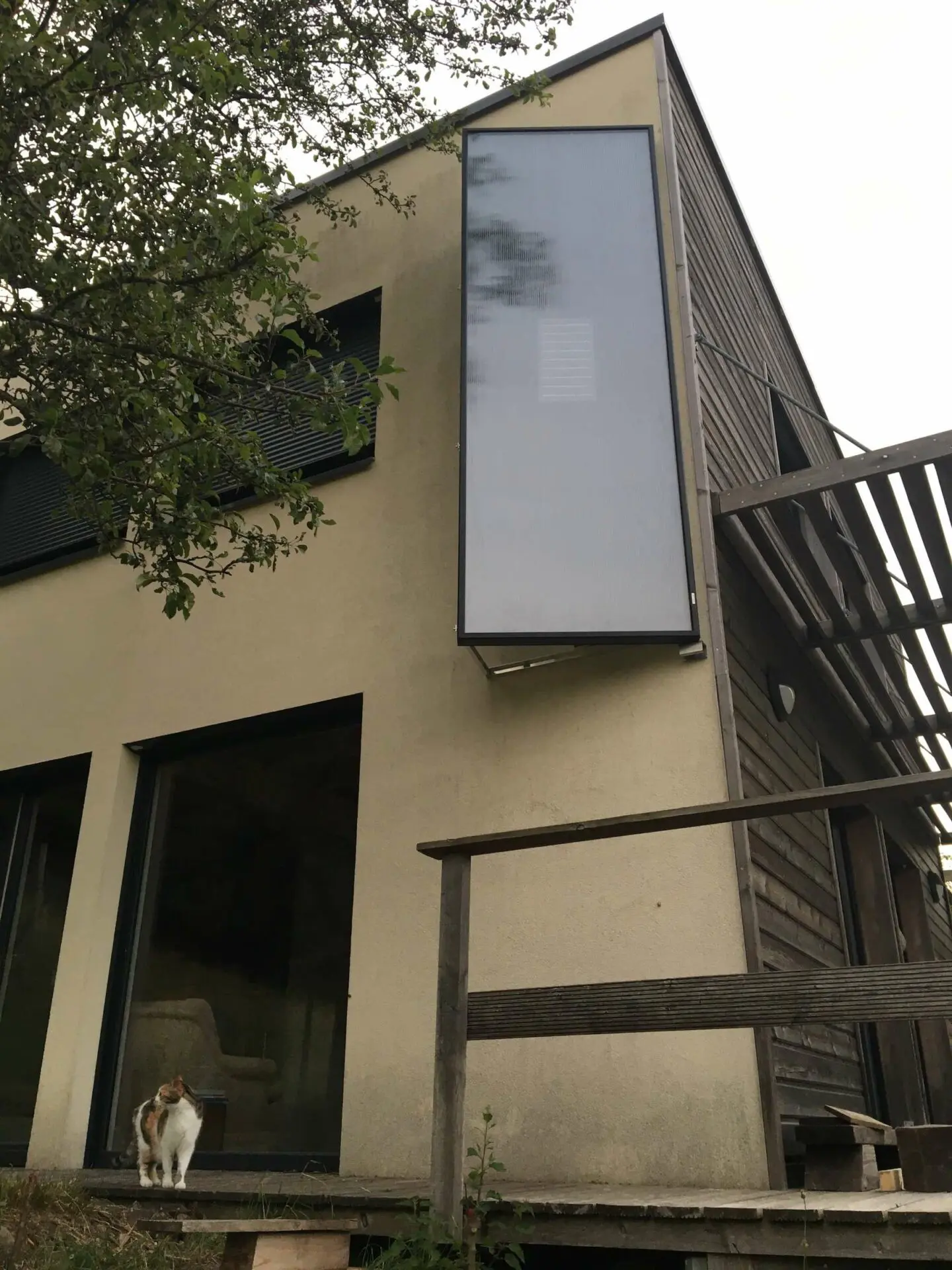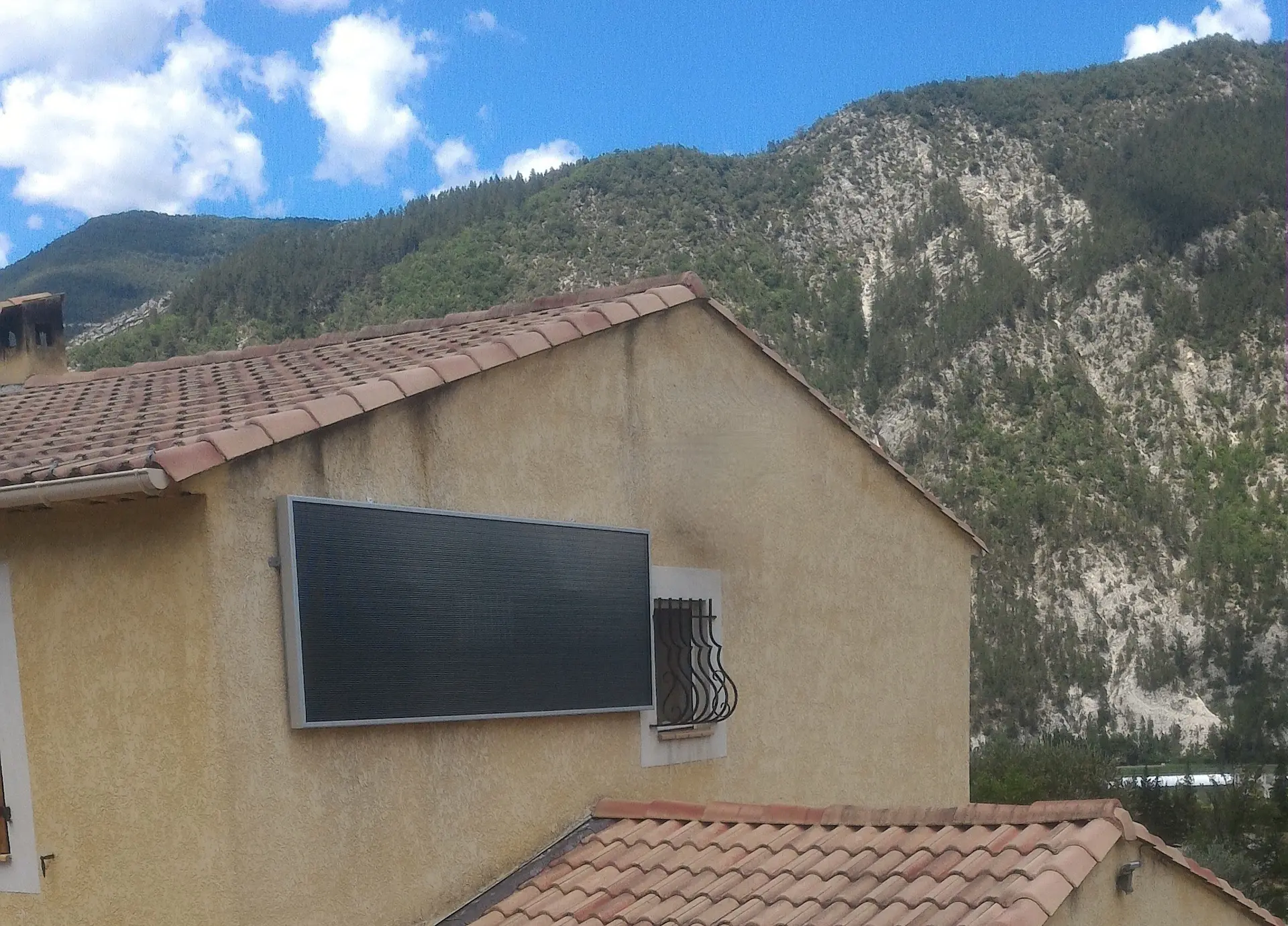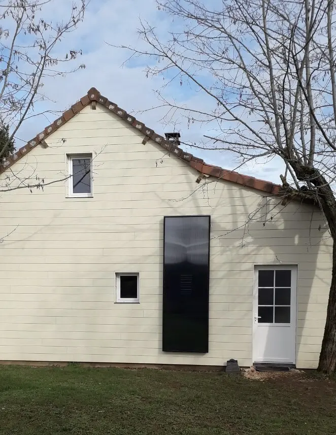 Ce « mur solaire » soufflera de l’air réchauffé par le soleil entre 30 et 60°C environ en saison intermédiaire.